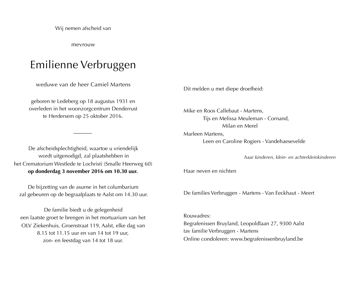 Mevrouw Emilienne Verbruggen