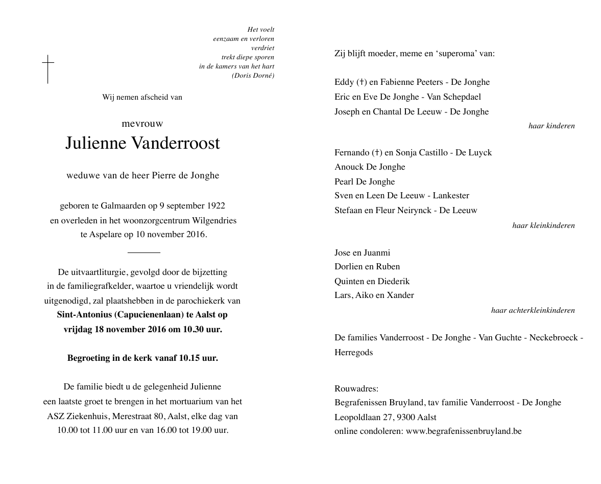 Overleden te Aspelare (9404) op donderdag 10 november 2016 op 94-jarige leeftijd