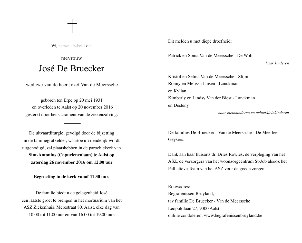 Overleden te Aalst (9300) op zondag 20 november 2016 op 85-jarige leeftijd