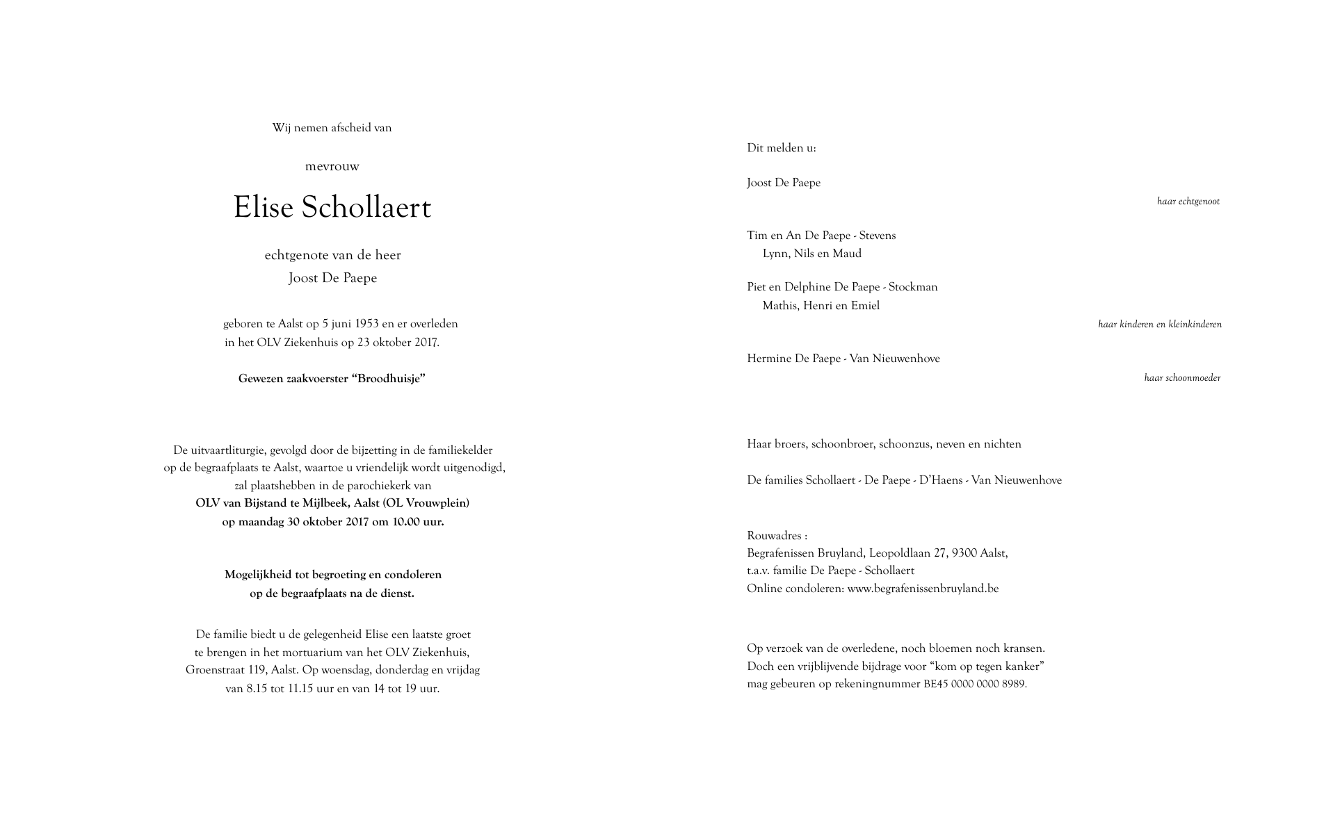 Overleden te Aalst (9300) op maandag 23 oktober 2017 op 64-jarige leeftijd