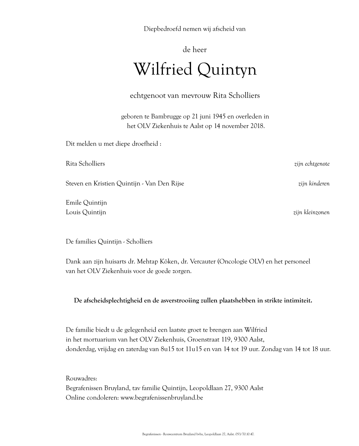 Overleden te Aalst (9300) op woensdag 14 november 2018 op 73-jarige leeftijd