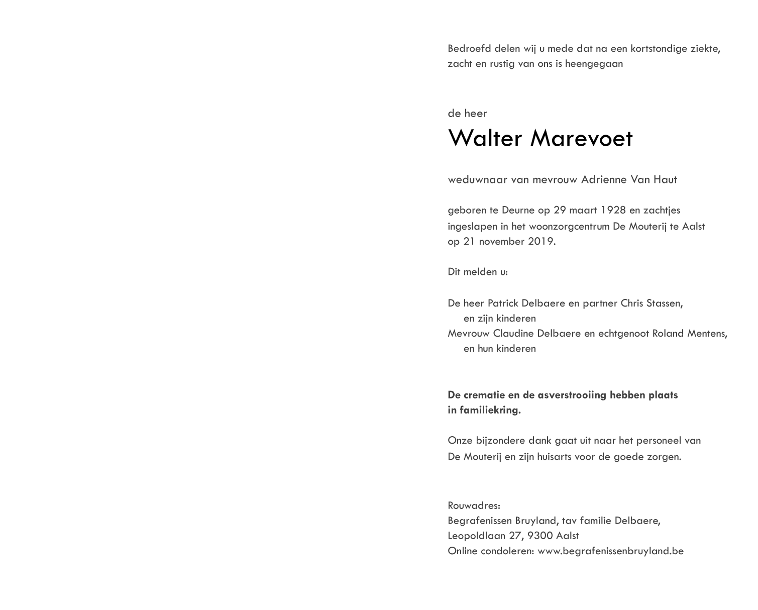 Weduwnaar van Mevrouw Adrienne Van Haut