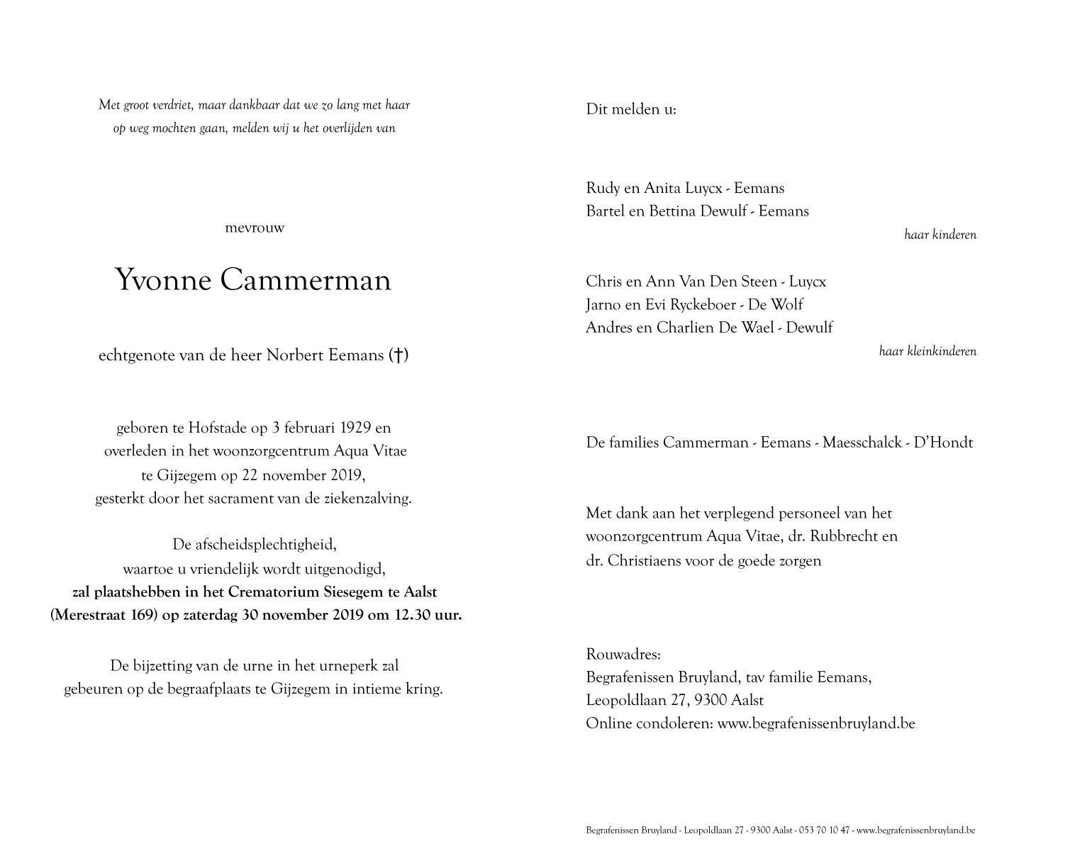 Overleden te Gijzegem (9308) op vrijdag 22 november 2019 op 90-jarige leeftijd