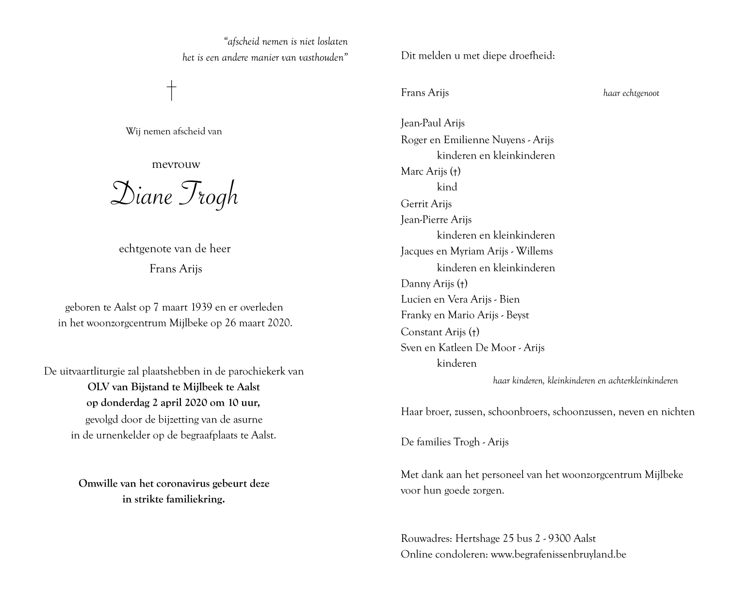 Overleden te Aalst (9300) op donderdag 26 maart 2020 op 81-jarige leeftijd