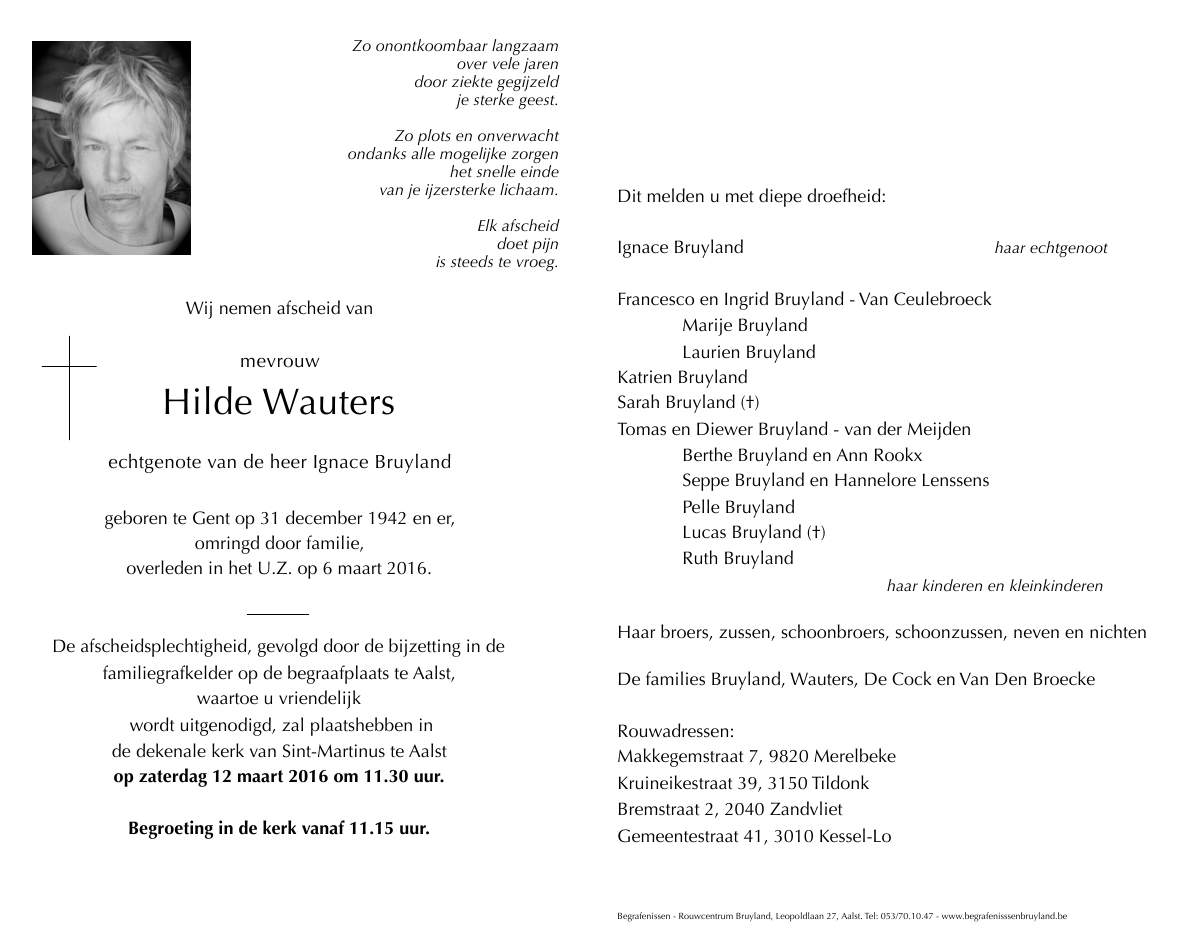 Overleden te Gent (9000) op zondag 6 maart 2016 op 73-jarige leeftijd