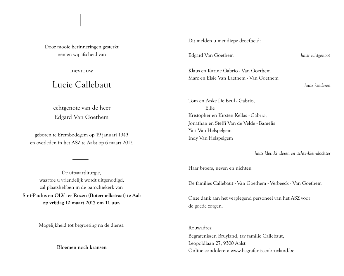 Echtgenote van Mijnheer Edgard Van Goethem