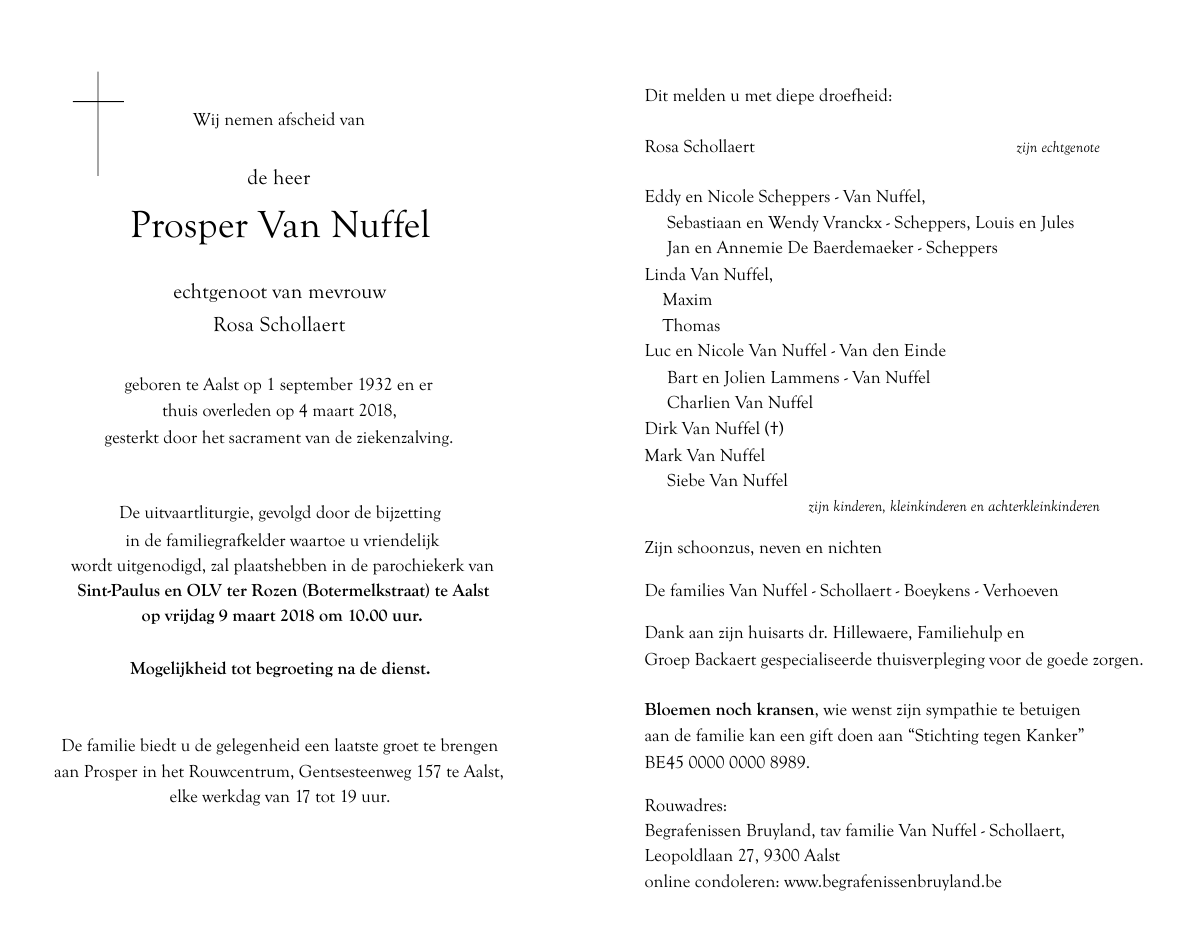 Overleden te Aalst (9300) op zondag 4 maart 2018 op 85-jarige leeftijd