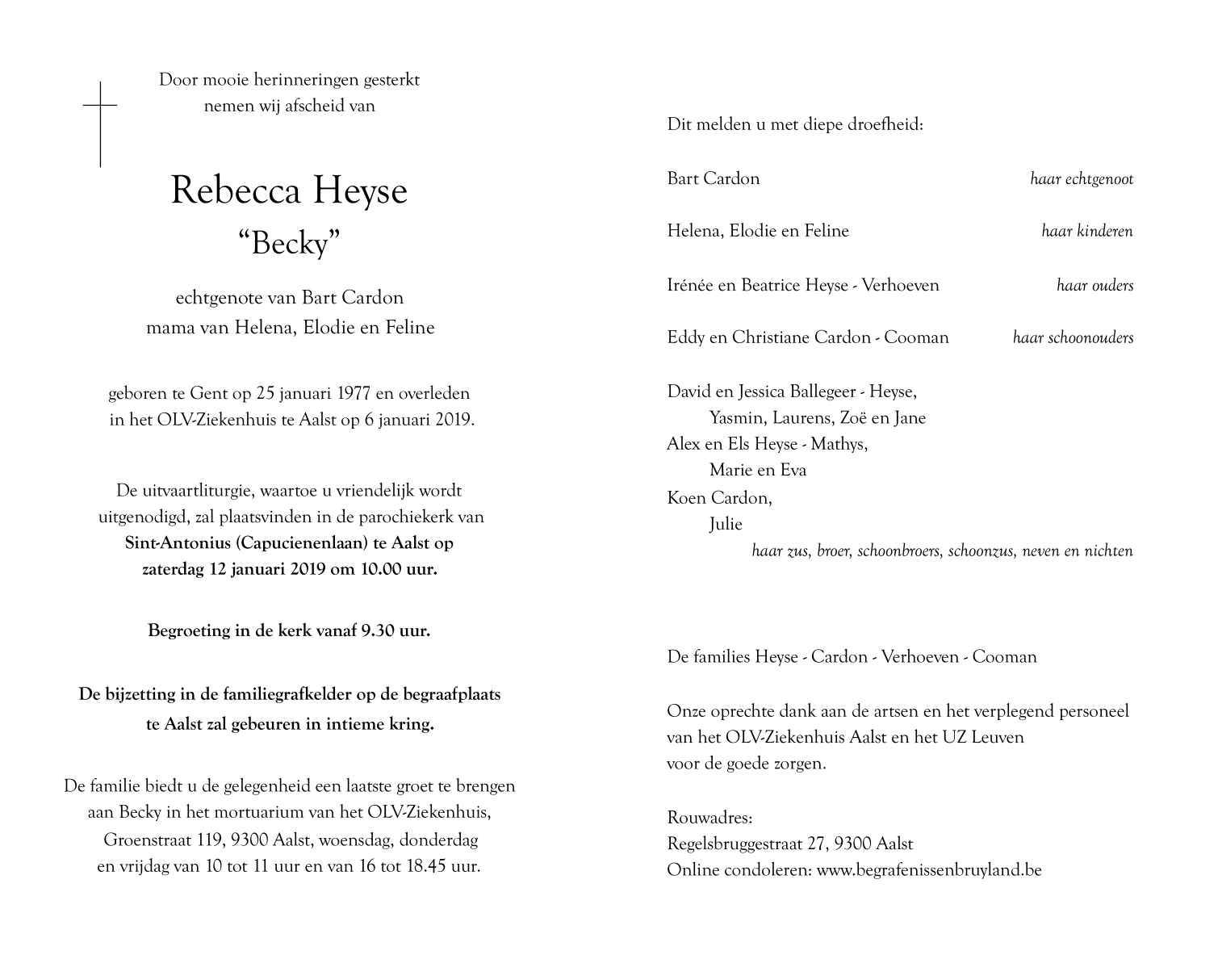 Overleden te Aalst (9300) op zondag 6 januari 2019 op 41-jarige leeftijd