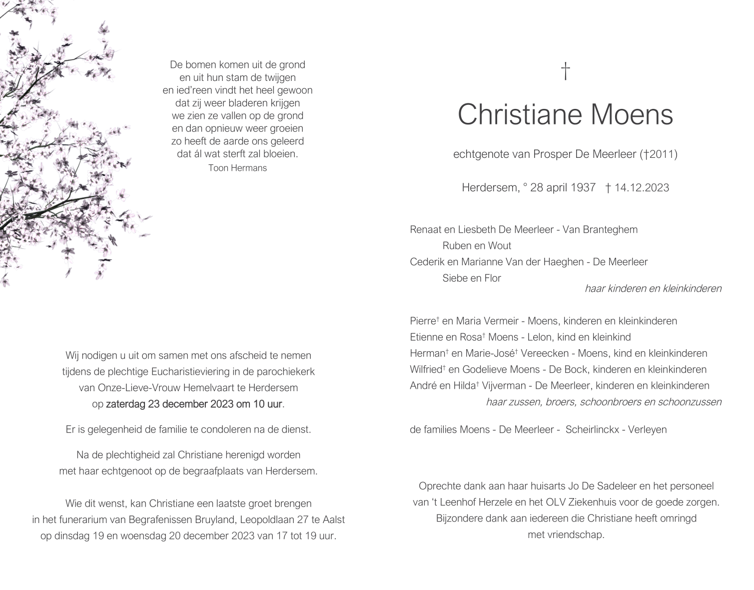 Overleden te Aalst (9300) op donderdag 14 december 2023 op 86-jarige leeftijd