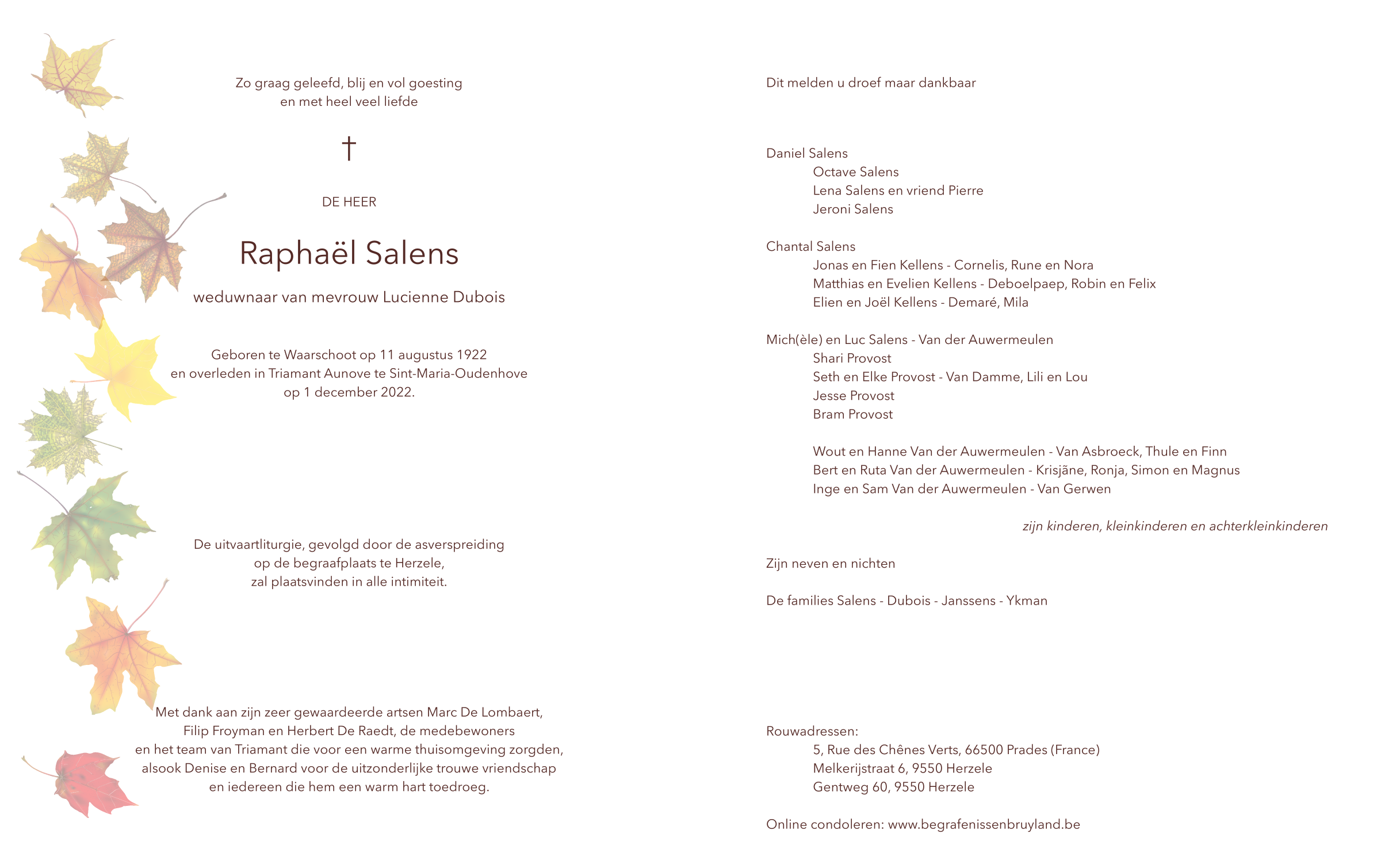 Overleden te Sint-Maria-Oudenhove (Zottegem) (9620) op donderdag 1 december 2022 op 100-jarige leeftijd