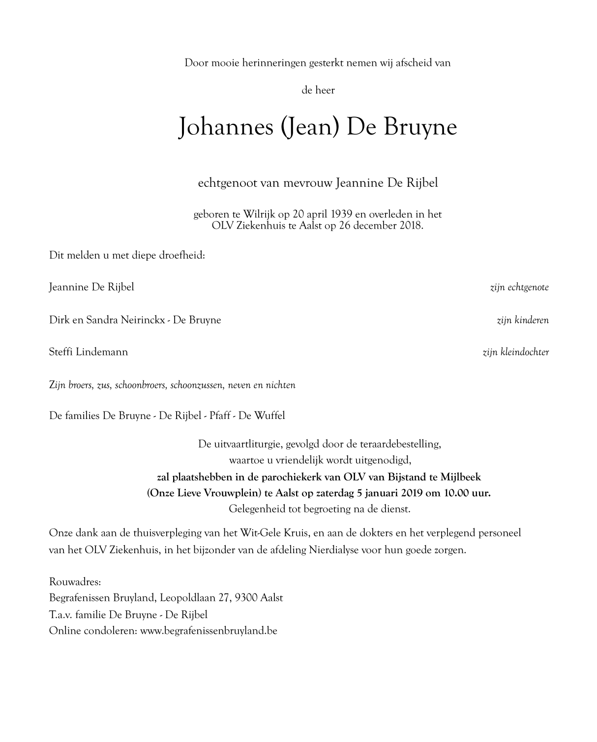 Echtgenoot van Mevrouw Jeannine De Rijbel