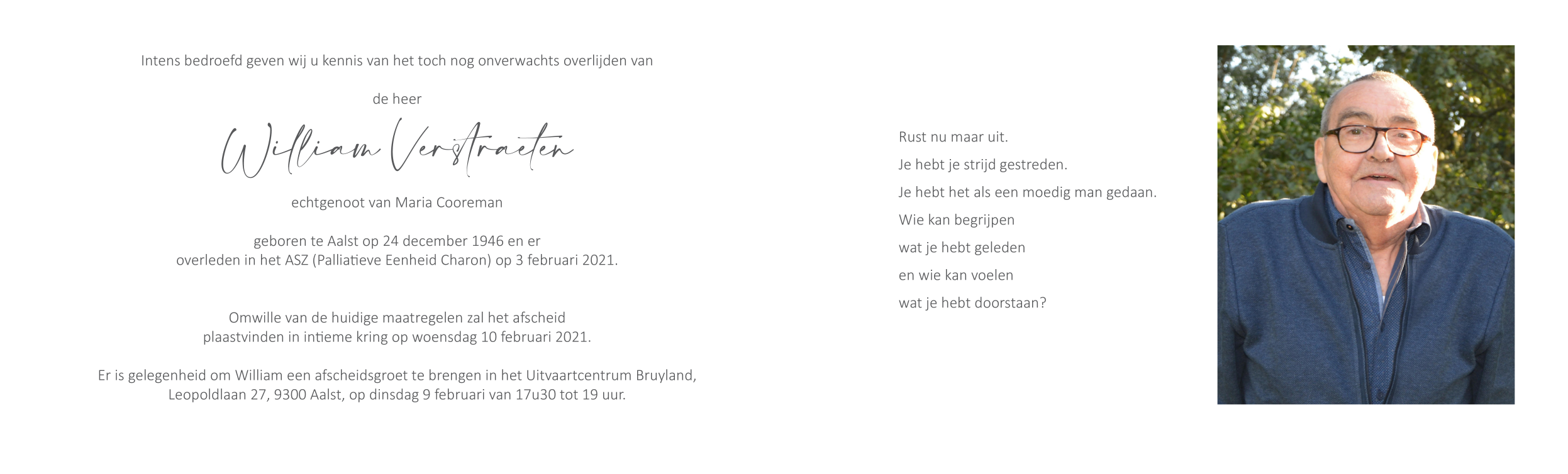 Overleden te Aalst (9300) op woensdag 3 februari 2021 op 74-jarige leeftijd