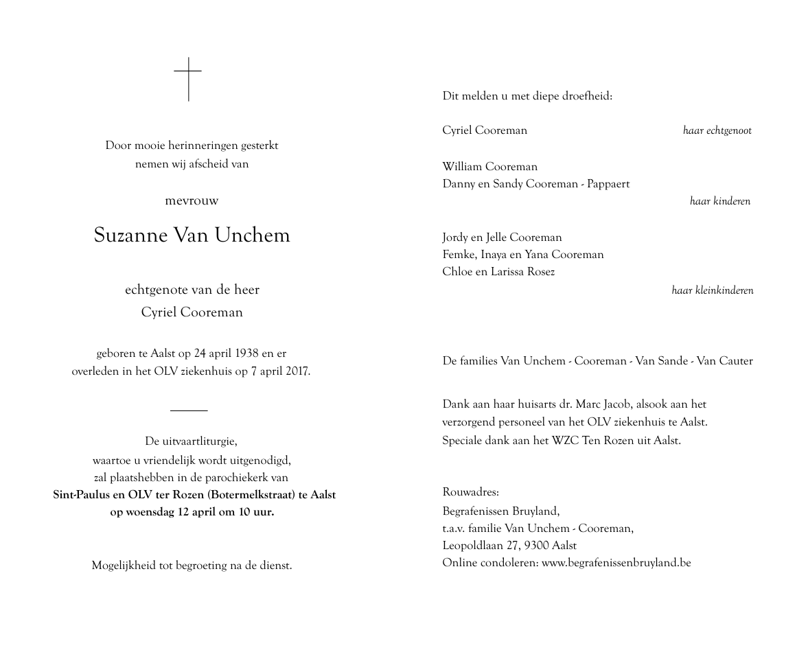 Overleden te Aalst (9300) op vrijdag 7 april 2017 op 78-jarige leeftijd