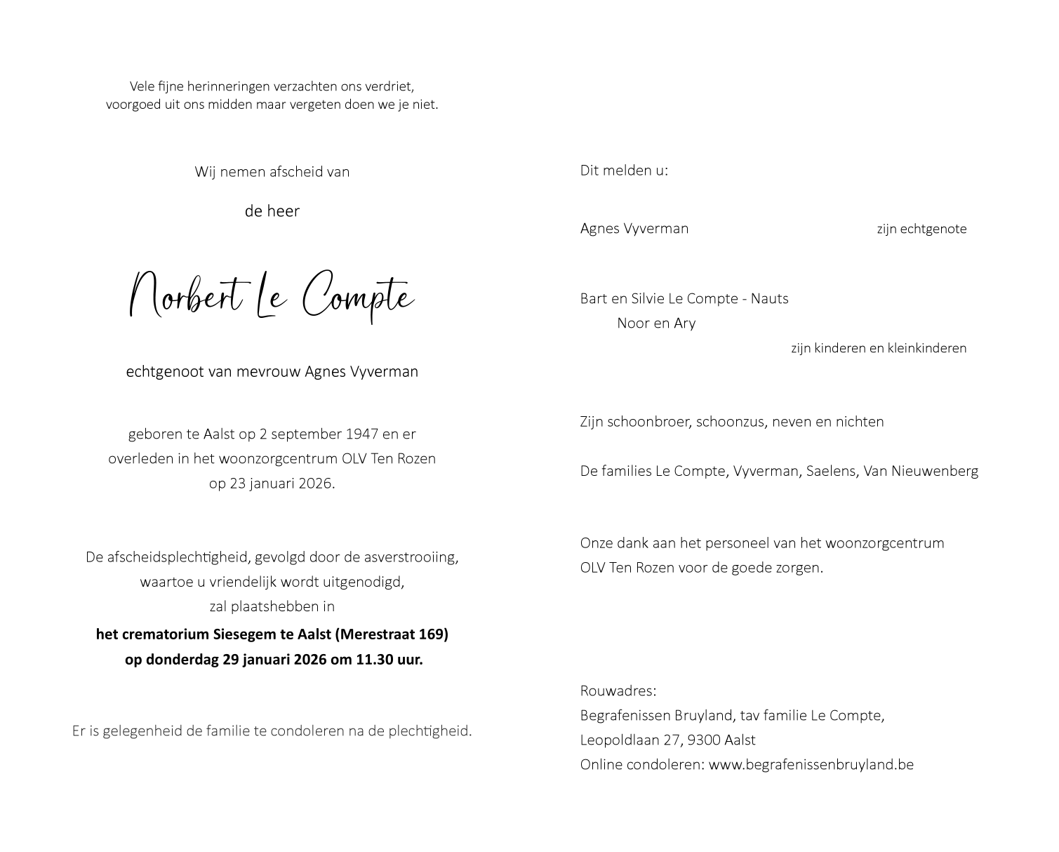 Overleden te Aalst (9300) op vrijdag 23 januari 2026 op 78-jarige leeftijd
