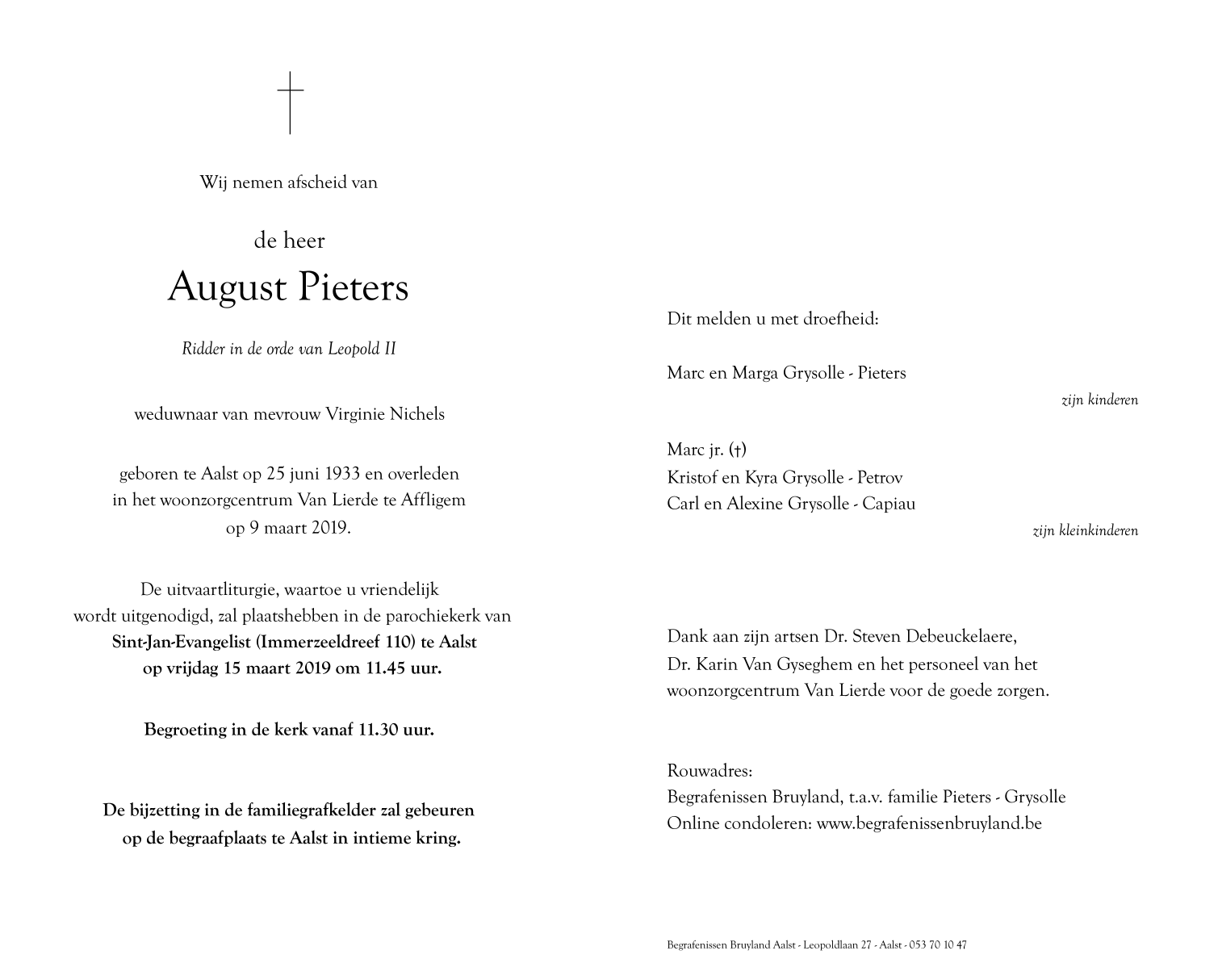 Overleden te Affligem (1790) op zaterdag 9 maart 2019 op 85-jarige leeftijd