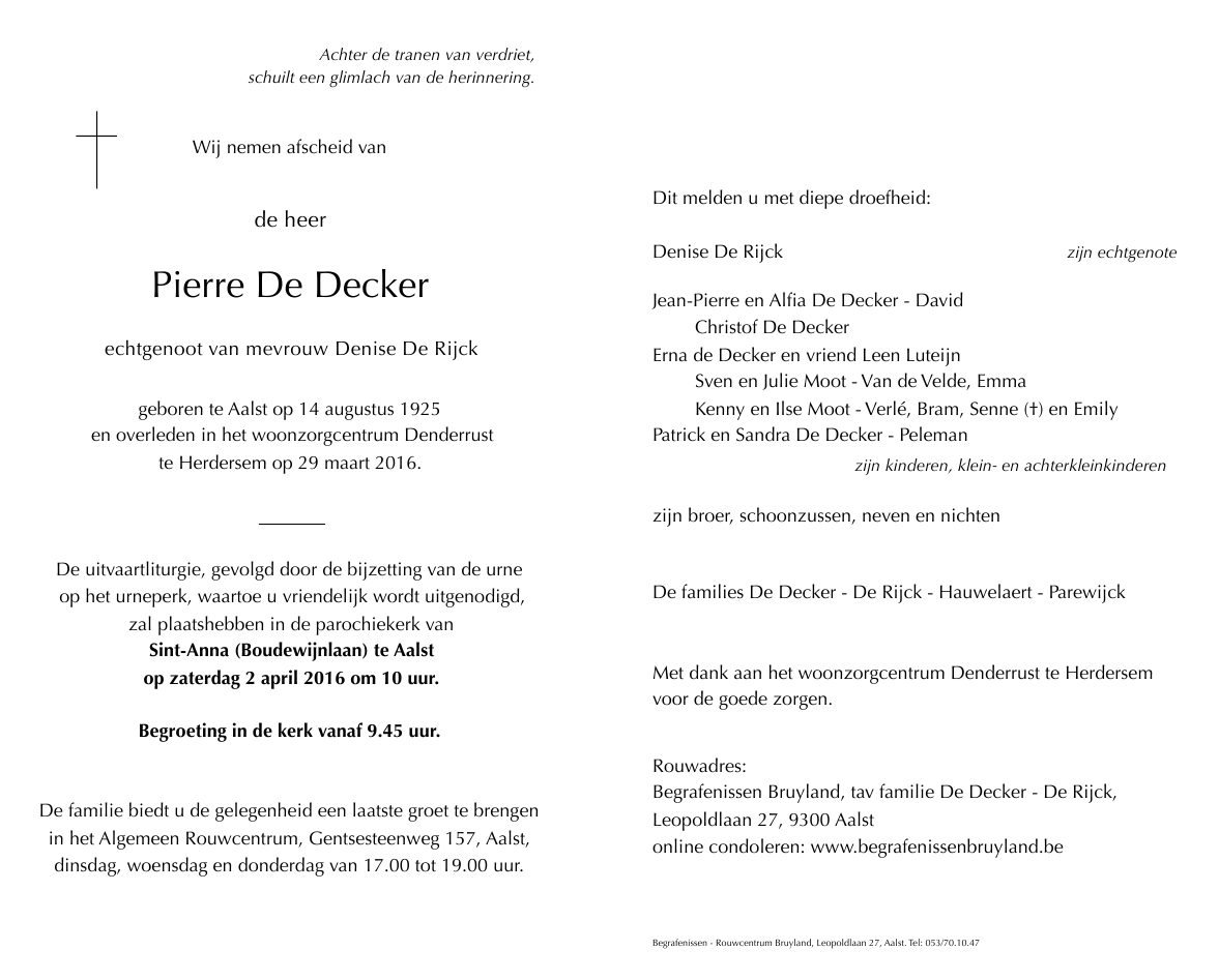Overleden te Herdersem (9310) op dinsdag 29 maart 2016 op 90-jarige leeftijd