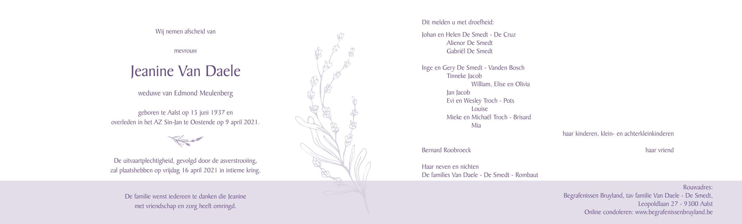 Overleden te Oostende (8400) op vrijdag 9 april 2021 op 83-jarige leeftijd