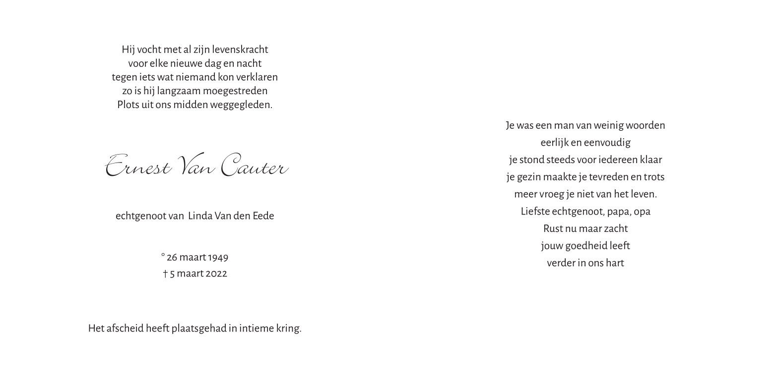Overlijdensbericht binnenkant