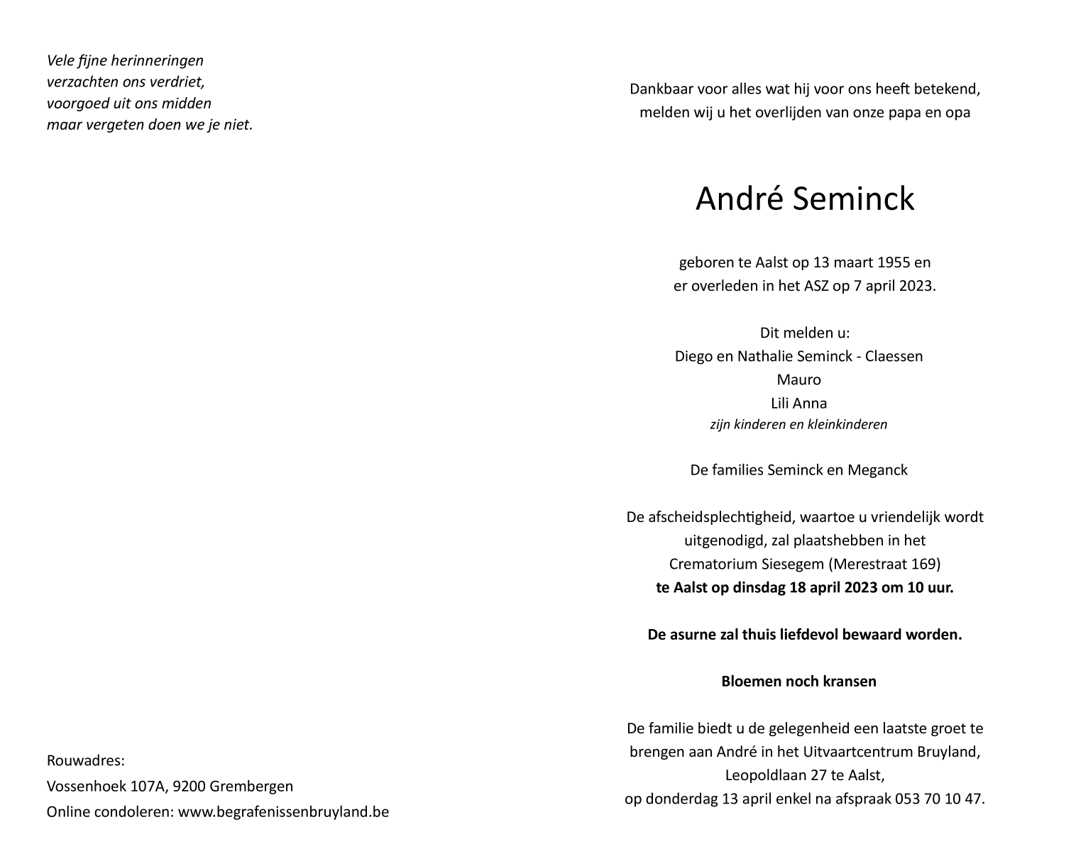 Overleden te Aalst (9300) op vrijdag 7 april 2023 op 68-jarige leeftijd