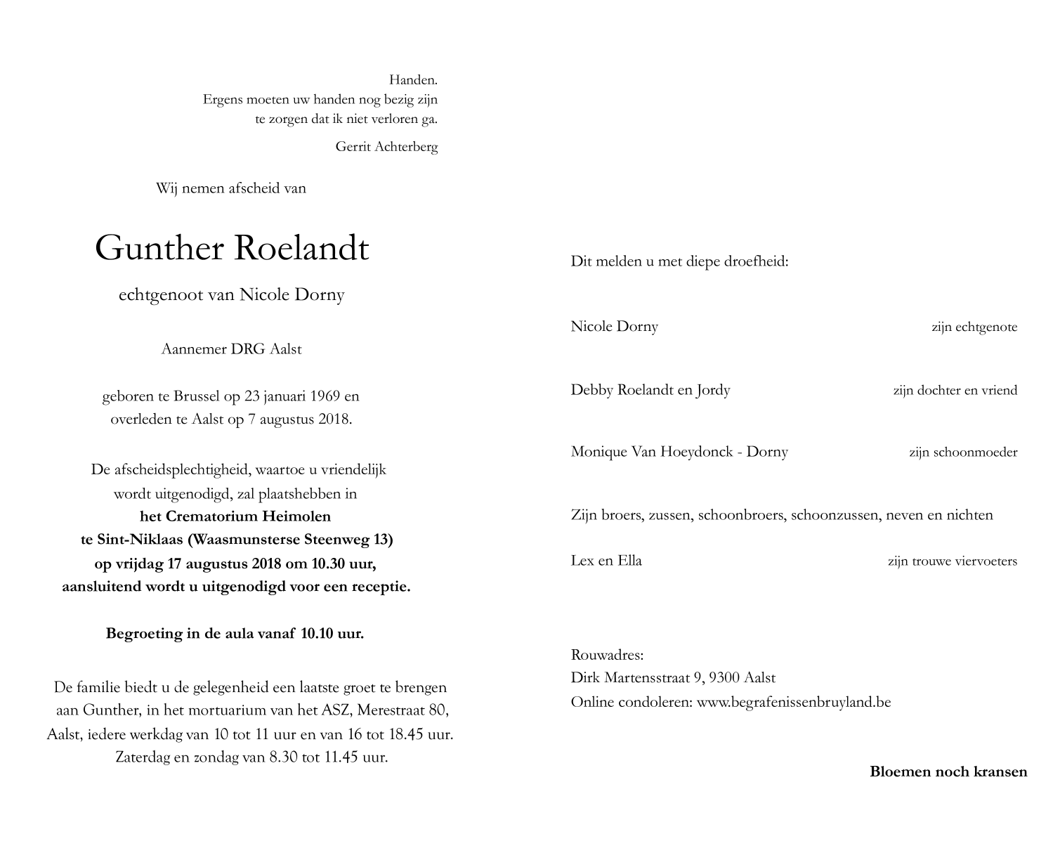 Overleden te Aalst (9300) op dinsdag 7 augustus 2018 op 49-jarige leeftijd