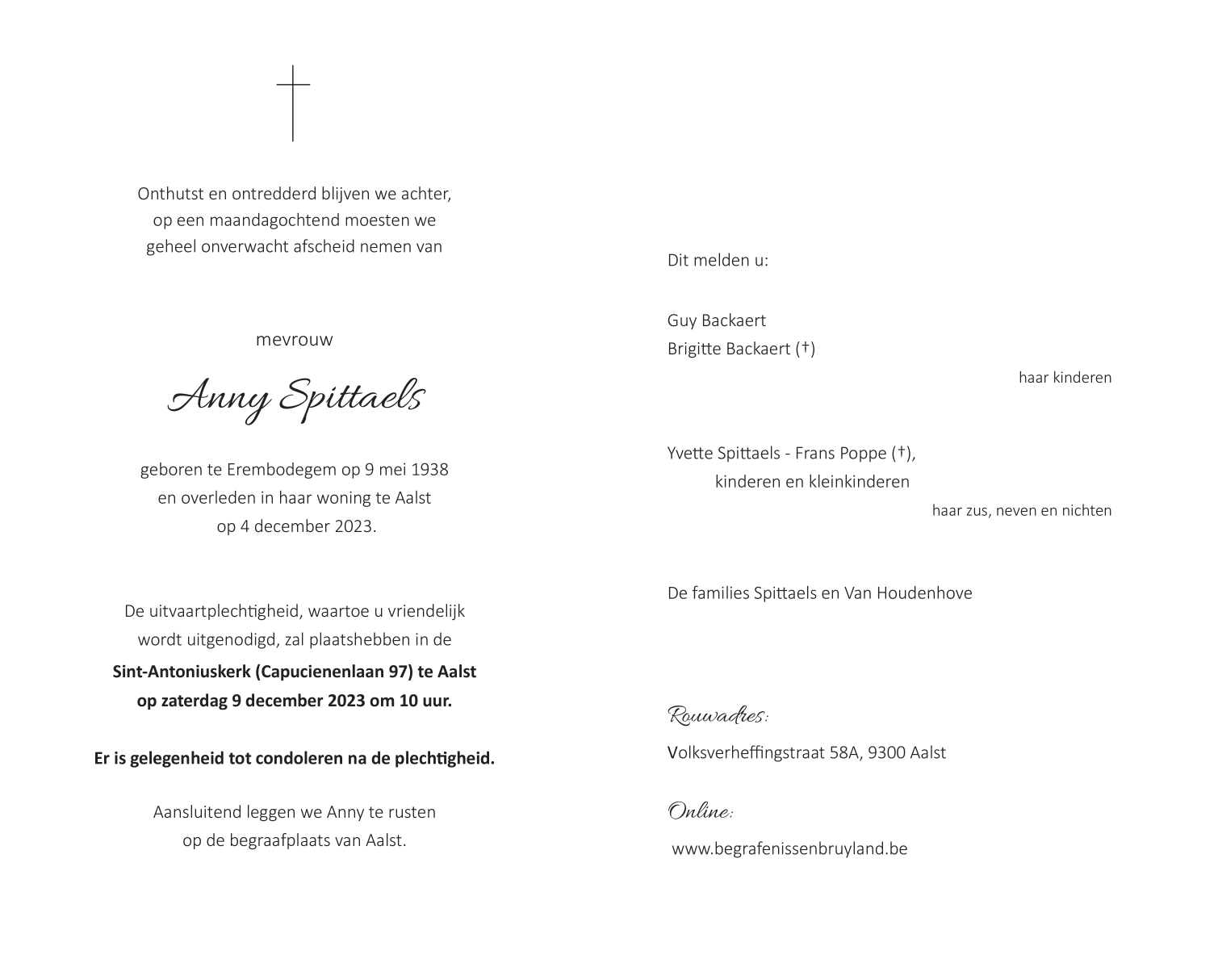 Overleden te Aalst (9300) op maandag 4 december 2023 op 85-jarige leeftijd