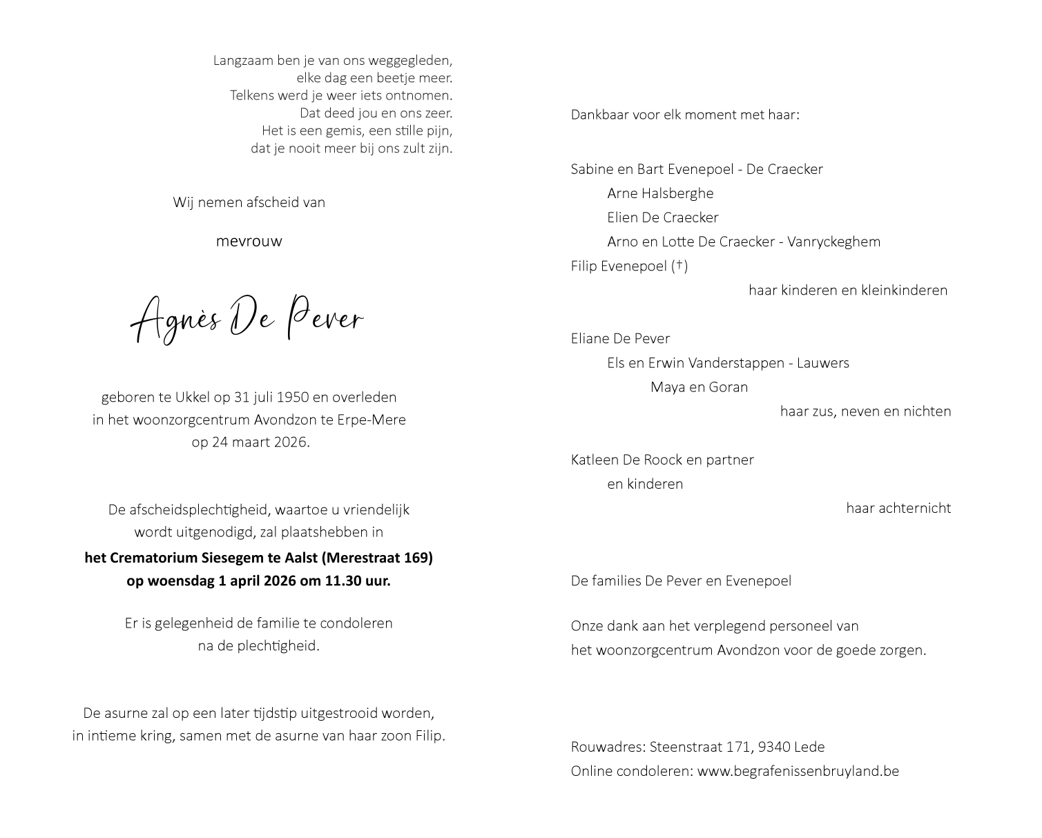 Overleden te Erpe-Mere (9420) op dinsdag 24 maart 2026 op 75-jarige leeftijd
