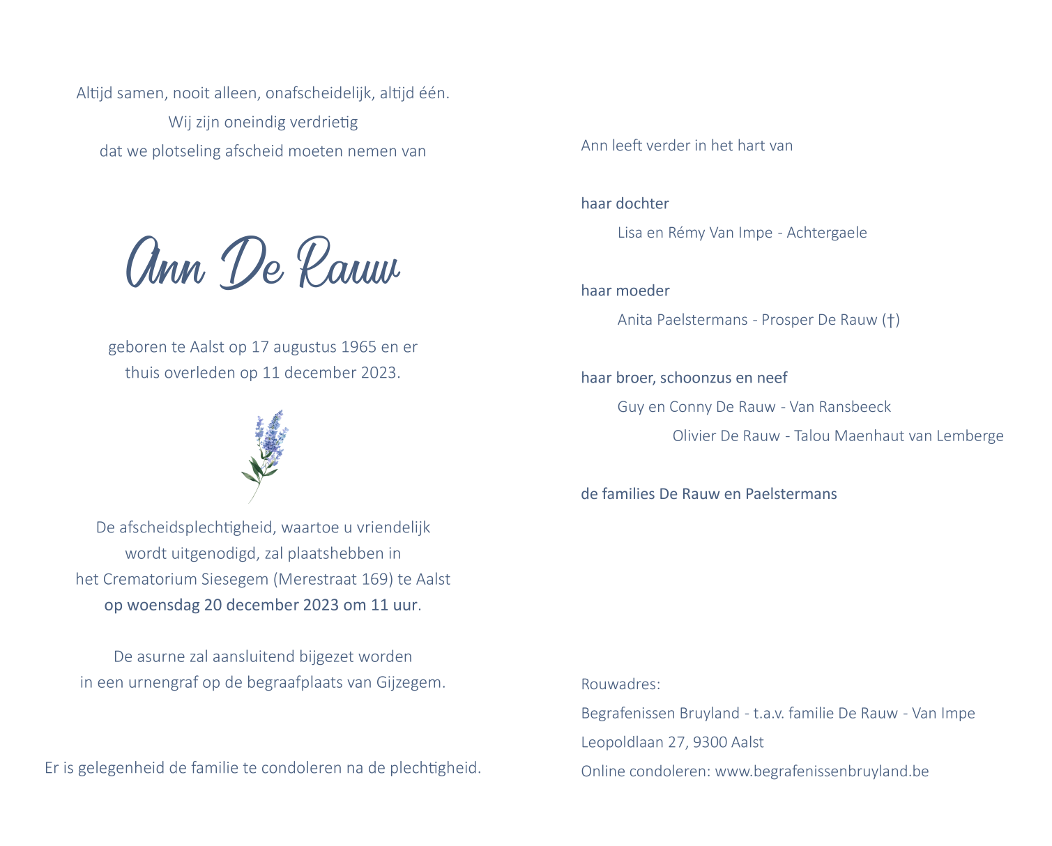 Overleden te Aalst (9300) op maandag 11 december 2023 op 58-jarige leeftijd