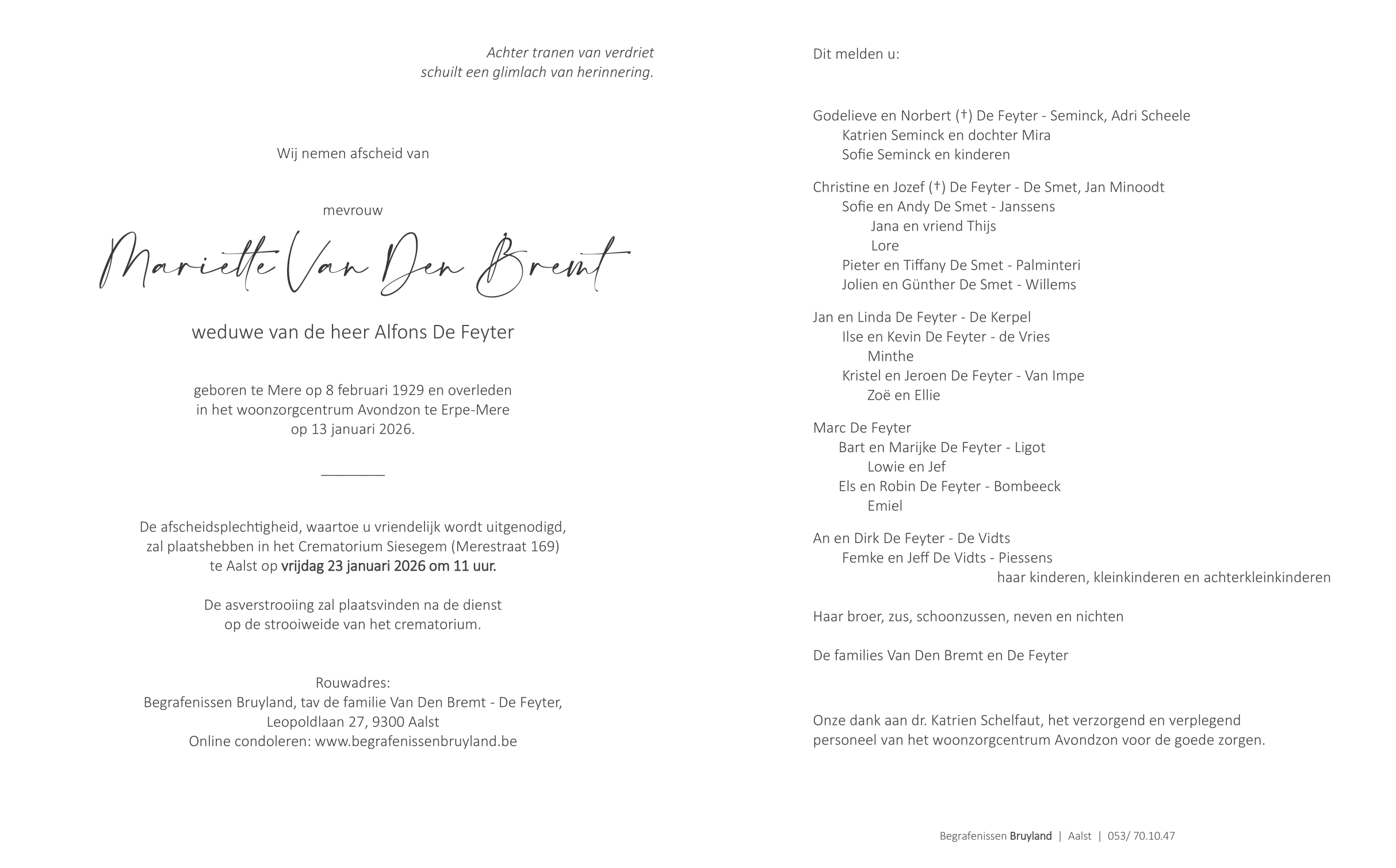 Overleden te Mere (9420) op dinsdag 13 januari 2026 op 96-jarige leeftijd