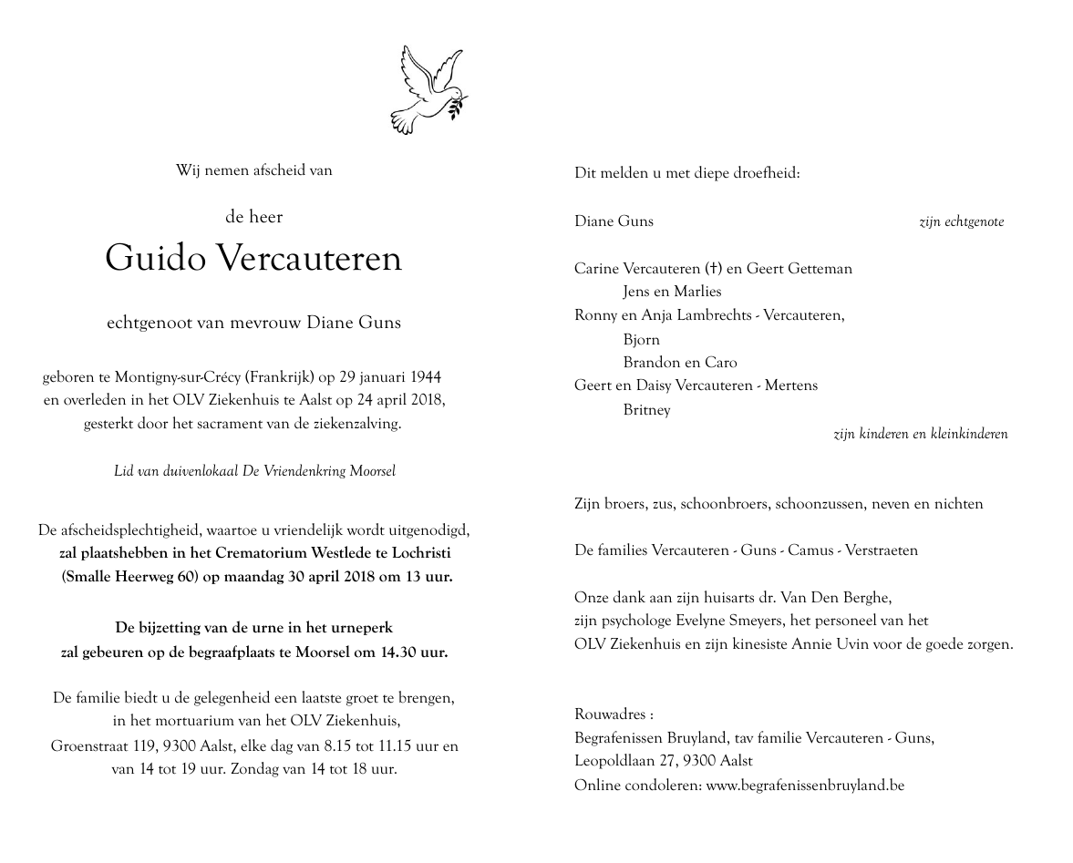 Overleden te Aalst (9300) op dinsdag 24 april 2018 op 74-jarige leeftijd