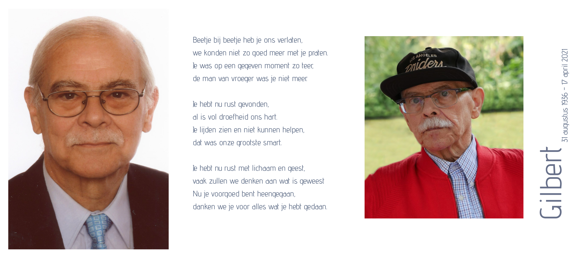 Overleden te Aalst (9300) op zaterdag 17 april 2021 op 84-jarige leeftijd