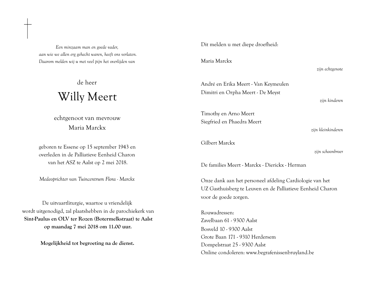 Overleden te Aalst (9300) op woensdag 2 mei 2018 op 74-jarige leeftijd
