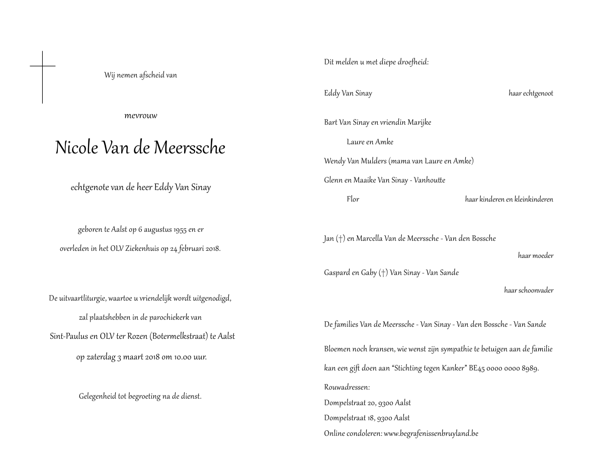 Echtgenote van Mijnheer Eddy Van Sinay