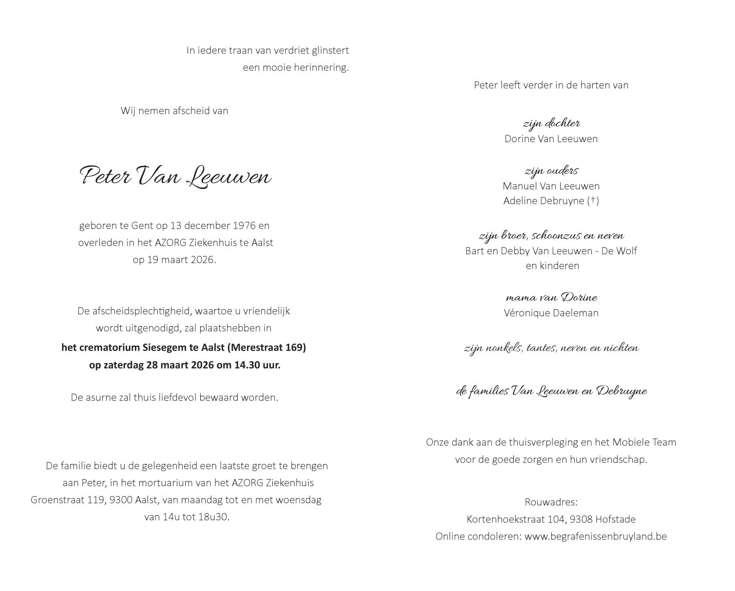 Overleden te Aalst (9300) op donderdag 19 maart 2026 op 49-jarige leeftijd