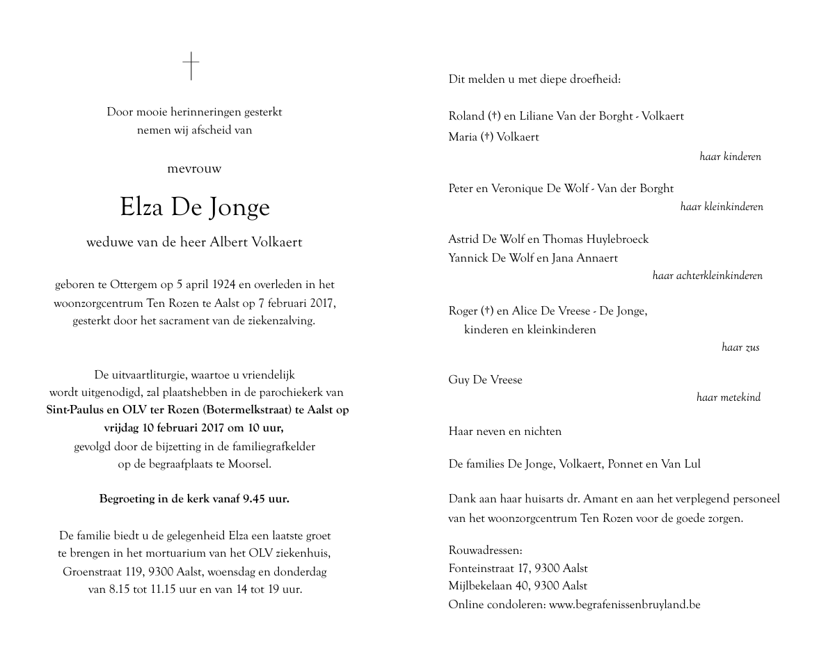 Overleden te Aalst (9300) op dinsdag 7 februari 2017 op 92-jarige leeftijd
