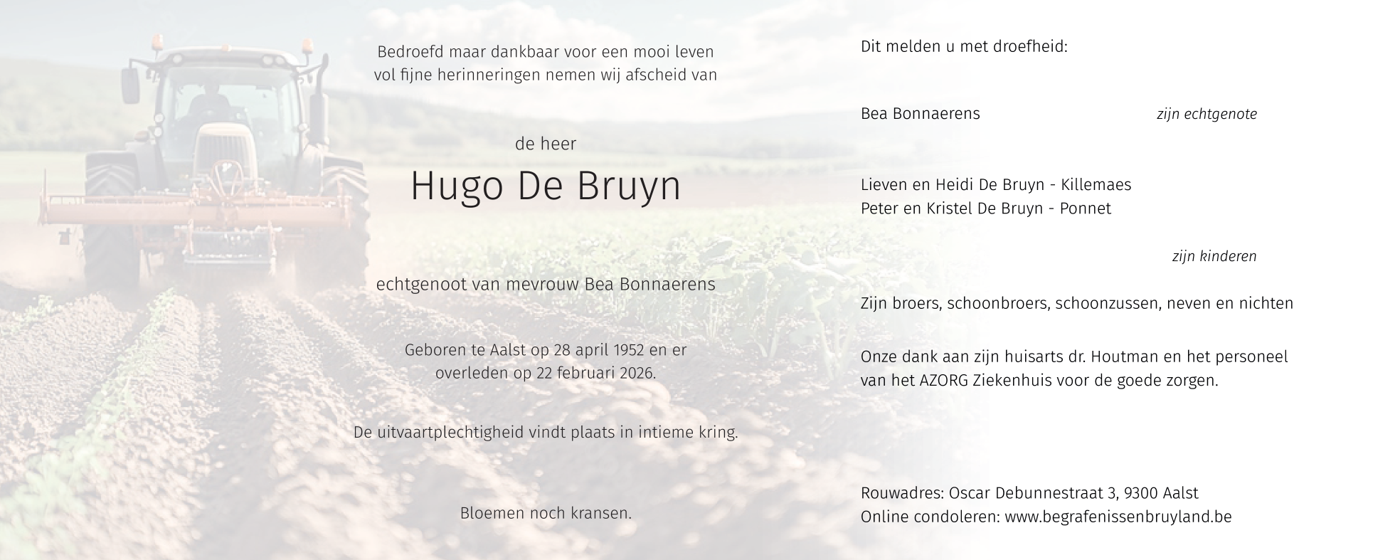 Overleden te Aalst (9300) op zondag 22 februari 2026 op 73-jarige leeftijd