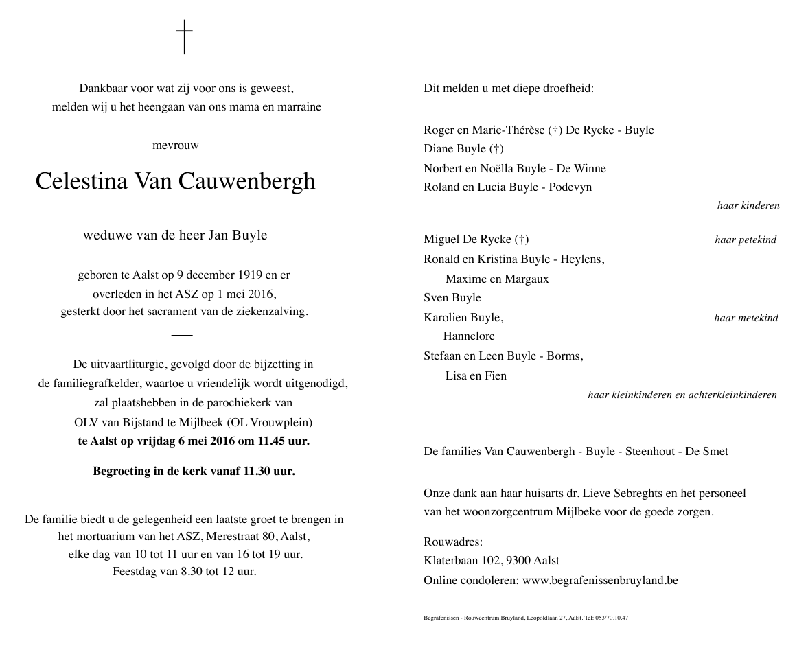Overleden te Aalst (9300) op zondag 1 mei 2016 op 96-jarige leeftijd