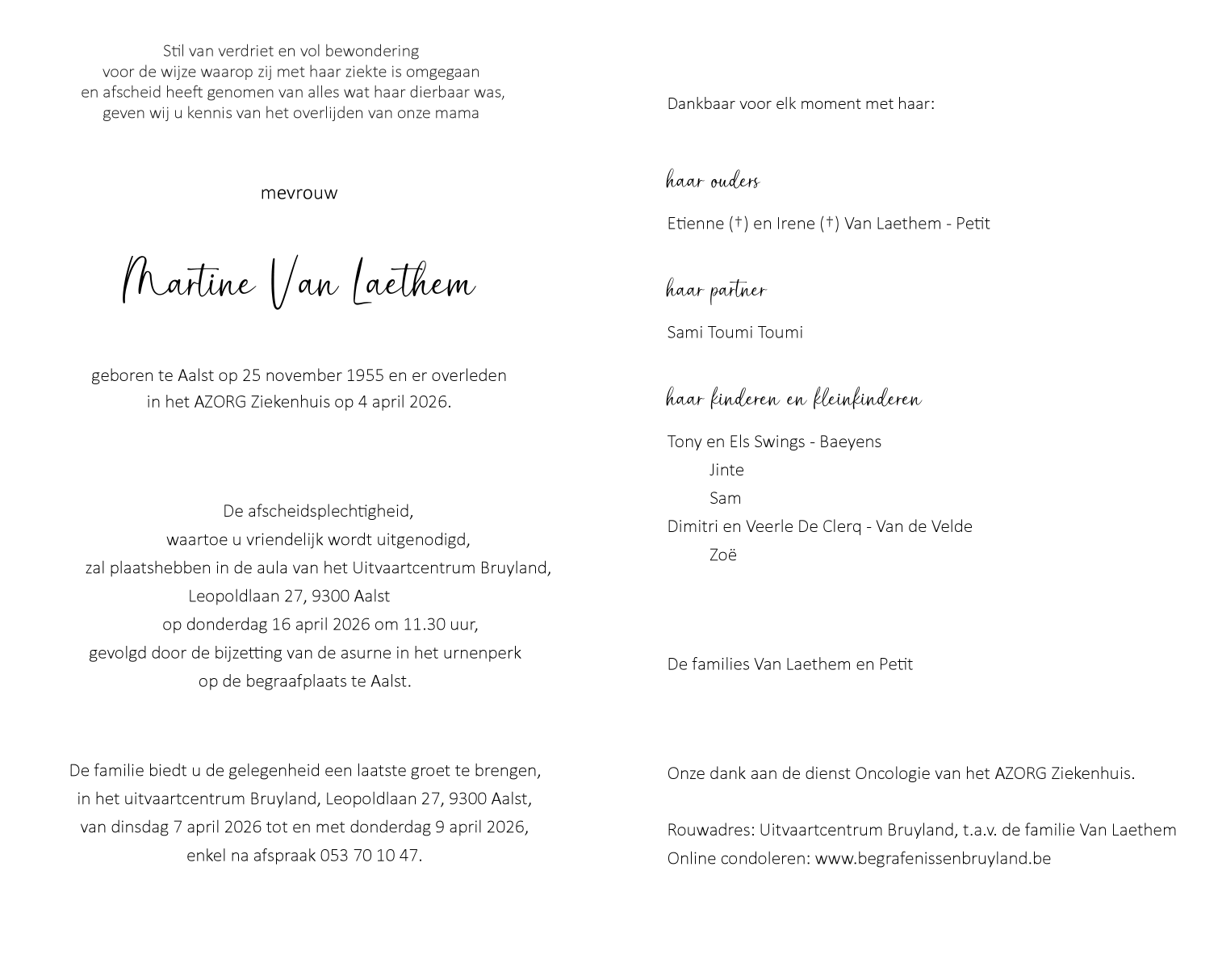 Overleden te Aalst (9300) op zaterdag 4 april 2026 op 70-jarige leeftijd