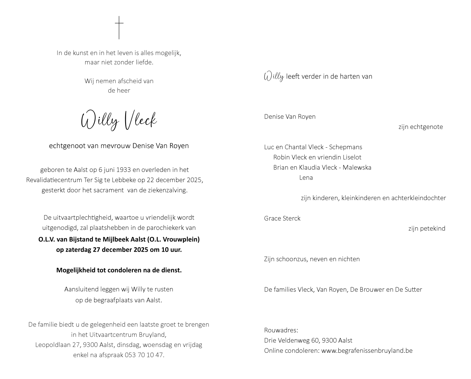Overleden te Lebbeke (9280) op maandag 22 december 2025 op 92-jarige leeftijd