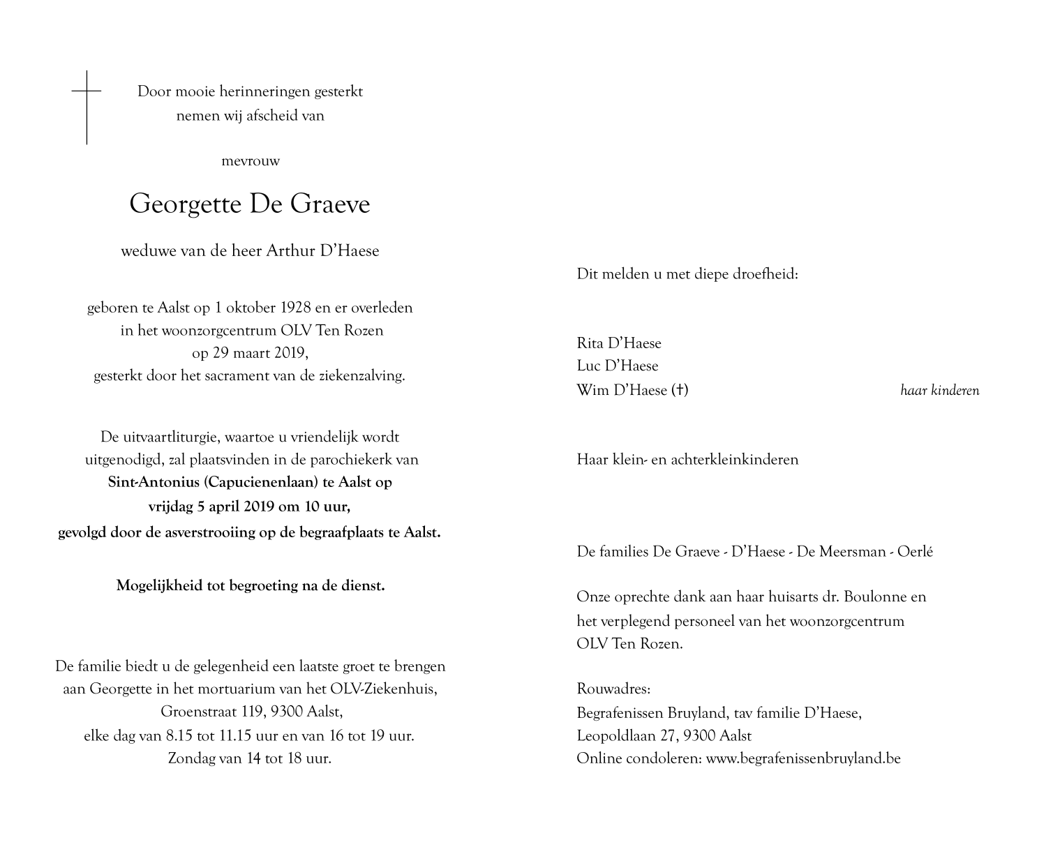 Overleden te Aalst (9300) op vrijdag 29 maart 2019 op 90-jarige leeftijd
