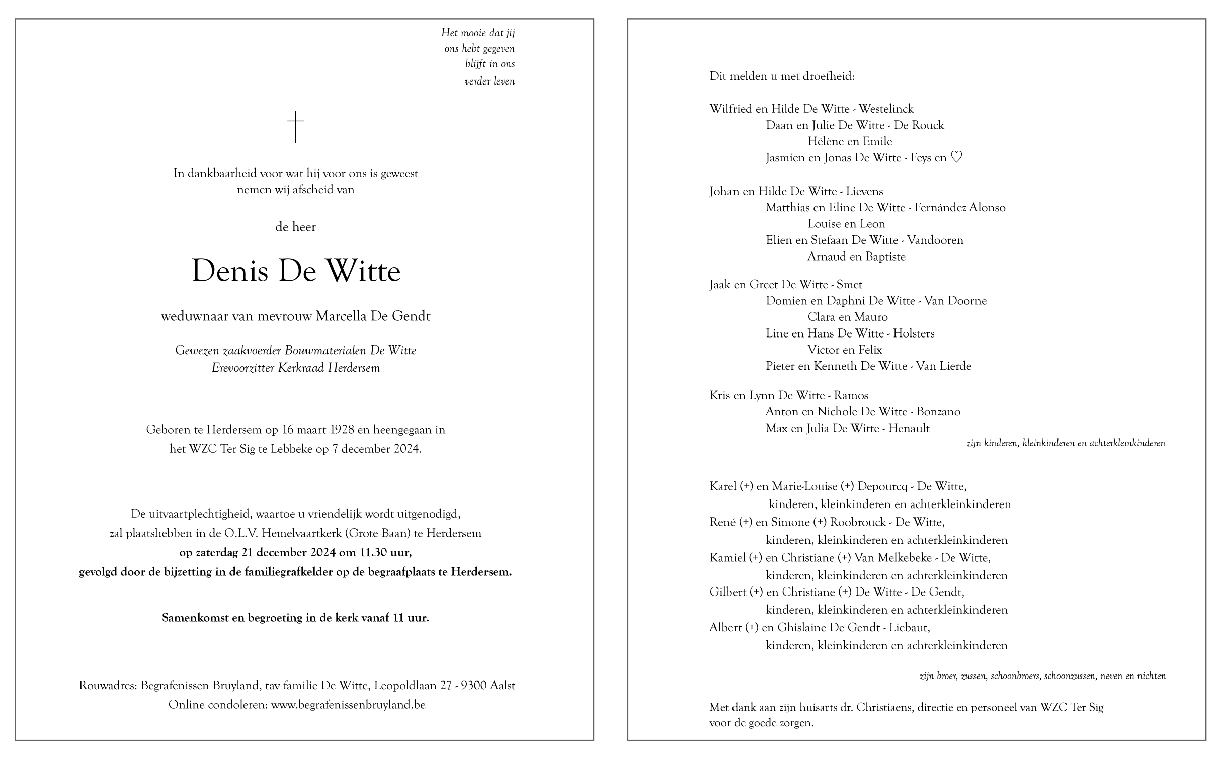 Overleden te Lebbeke (9280) op zaterdag 7 december 2024 op 96-jarige leeftijd