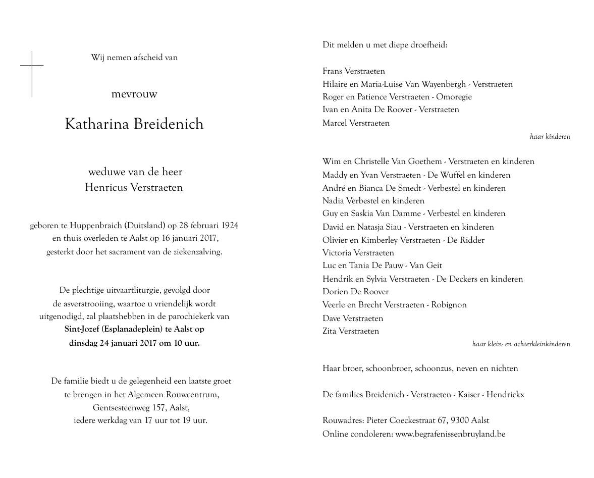 Overleden te Aalst (9300) op maandag 16 januari 2017 op 92-jarige leeftijd