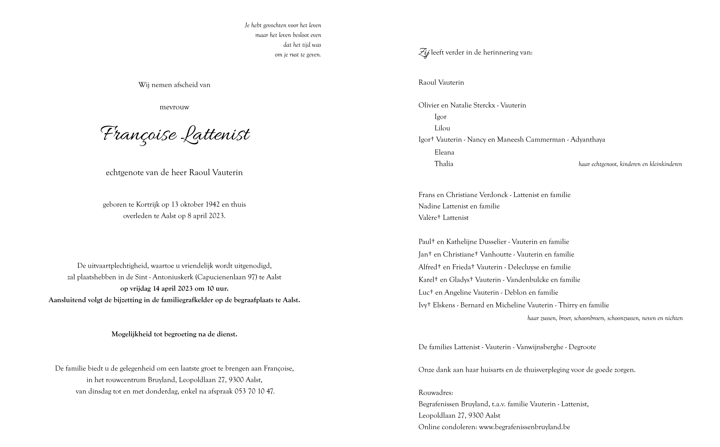 Overleden te Aalst (9300) op zaterdag 8 april 2023 op 80-jarige leeftijd
